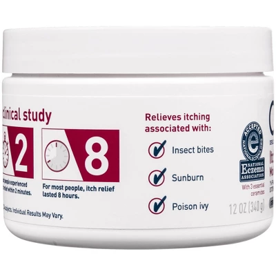 Developed with dermatologists and formulated with the anti-itch ingredient, Pramoxine Hydrochloride 1%, CeraVe Itch Relief Moisturizing Cream for Dry and Itchy Skin temporarily relieves itching associated with minor skin irritations, insect bites and sunburn. The product also contains three essential ceramides that helps repair and restore the skin’s barrier all in an emollient based cream with a rich, velvety texture. The Itch Relief Moisturizing Cream is steroid-free, fragrance-free, non-comedogenic and sulfate-free.