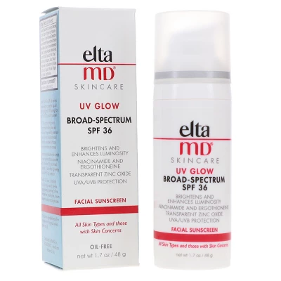 Introducing EltaMD’s UV Glow, a broad-spectrum SPF 36 sunscreen that delivers UVA and UVB protection in one convenient, 100% physical formula. Ideal for all skin types, UV Glow contains high-purity niacinamide to brighten skin and help improve and protect against discoloration, breakouts, and other common complexion concerns. In addition to its powerful sun protection properties, UV Glow also contains antioxidants that combat free radicals from UV and IR exposure, as well as HEV light. So whether you’re spending a day at the beach or just running errands around town, you can trust that your skin is safe from the harmful effects of the sun.