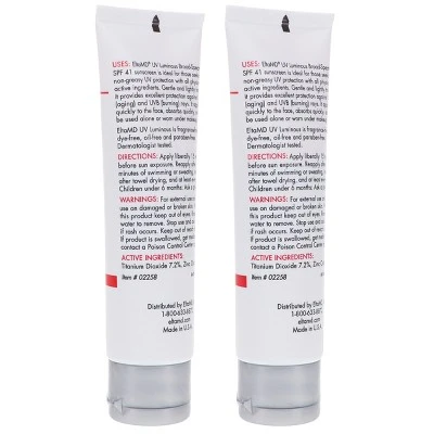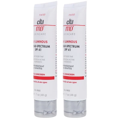 Experience the ultimate protection against sun exposure with Elta MD UV Luminous Broad Spectrum SPF 41. This all physical sunscreen provides superior protection from UVA, UVB and other harsh UV rays to keep your skin safe and healthy. Formulated with a subtle hint of color, this multi-tasking lotion also features color correcting technology that helps to blur imperfections and overlaps invisibly over most skin tones, perfect for post-procedure sun care. Lightweight and fast-absorbing, you’ll love how quickly it soaks into your skin without the greasy residue that can sometimes occur with other sunscreens. Keep your skin looking healthy and vibrant by adding Elta MD UV Luminous Broad Spectrum SPF 41 to your daily skincare routine!