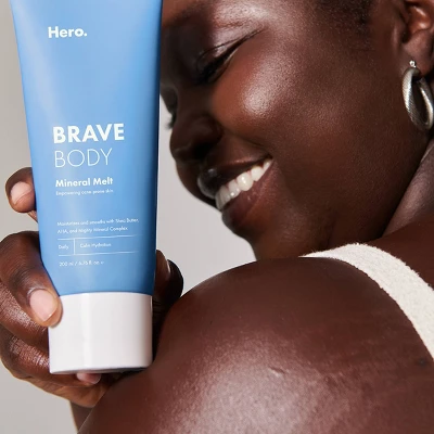 Mineral Melt smooth over rough spots by pairing exfoliating AHA with skin-softening shea butter and rocks an airy, creamy formula that melts as it smooths onto your body.