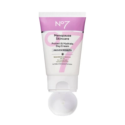 When menopause changes your skin, change your skincare. No7 Menopause Skincare products target visual signs of reduced estrogen, including dull skin, dry skin and lack of firmness, and are co-created with over 7,000 menopausal women. No7 menopause day cream is formulated with moisturizing niacinamide, hydrating complex, SPF 30, green tea and vitamin C. For best results, the full No7 Menopause Skincare range: use day cream every morning after cleansing and applying serum, then finish with eye cream. No7 is the UK’s best-kept beauty secret with over 85 years of trusted expertise — exceptional beauty shouldn’t be a luxury. (*Instrumental, skin hydration study. **Based on consumer study of UK women.)