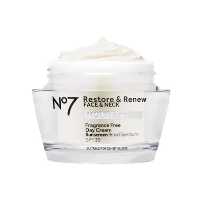 No7’s best-selling day cream, now in a fragrance free formula. With the protective power of SPF 30, No7’s unique Double Defence technology and age-defying ingredients, it works to reduce 5 key signs of aging for a younger looking face and neck. After 4 weeks skin looks younger, face & neck feel firmer, wrinkles appear visibly reduced, and skin tone looks more even.