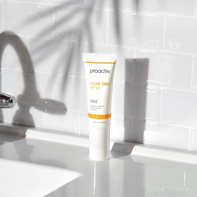 Proactiv’s Clear Skin SPF 30 is an oil-free, daily use sunscreen formulated specifically with acne-prone skin in mind. This SPF 30 formula provides broad-spectrum coverage, from both UVA & UVB rays — without clogging pores or causing breakouts.