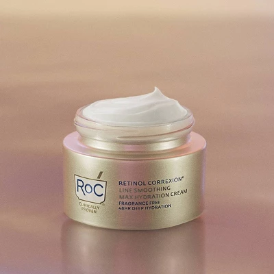 Deeply hydrate skin for 48 hours and visibly reduce wrinkles in 1 week with this fast-absorbing moisturizer made with pure RoC® Retinol & Hyaluronic Acid. This clinically proven formula improves skin firmness, leaving 100% of testers with supple, soft-to-the-touch skin and a visibly smoother, refreshed complexion.